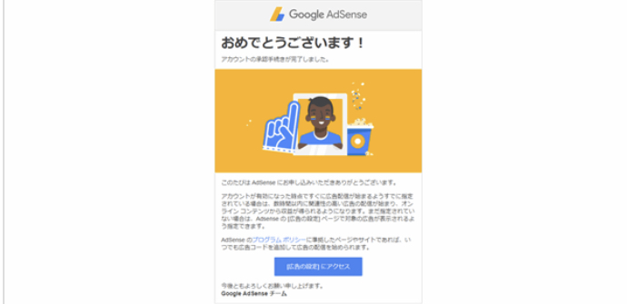 Googleアドセンスの審査に合格すると「お客様のサイトがAdSenseに接続されました」という件名のメールが届きます。