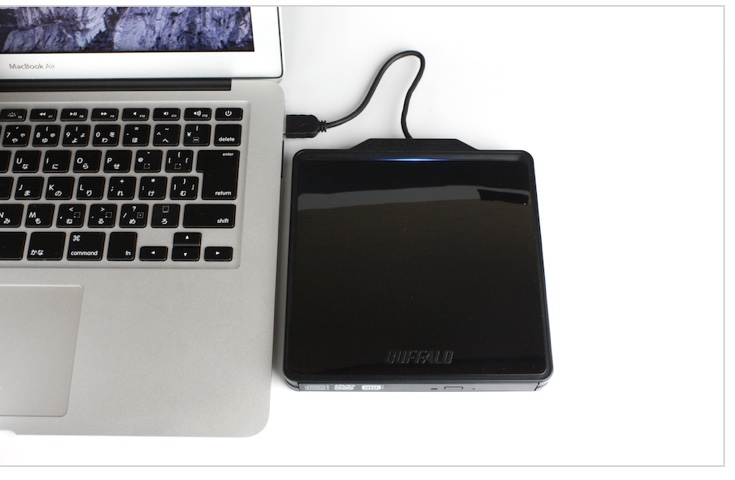 ※Apple純正品は1万円位しますので、ここでは別のポータブルCD/DVDドライブを使用します。
