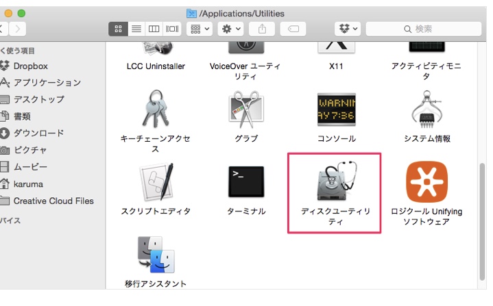 4.「ディスクユーティリティ」をクリックして起動させる。
