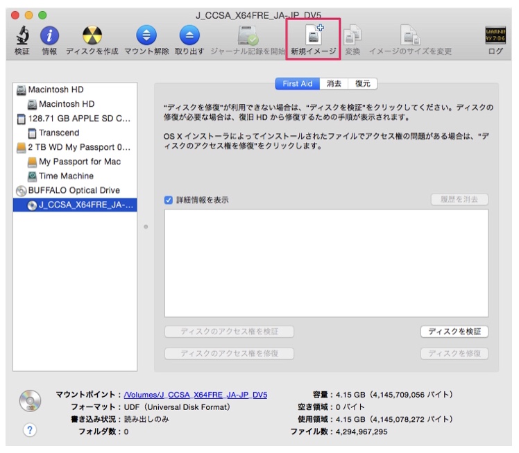 8.クリックして、ディスクイメージを作成する。※イメージの作成には、10分くらいかかります。