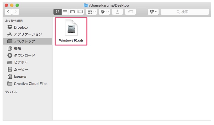 9.作成したファイルは拡張子「.cdr」なので、拡張子を「.iso」に変更します。
