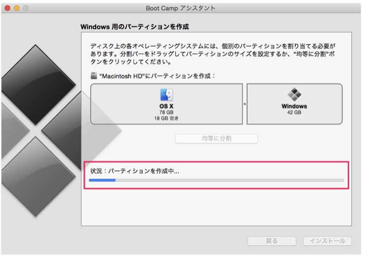 Boot Camp のインストールが始まります。