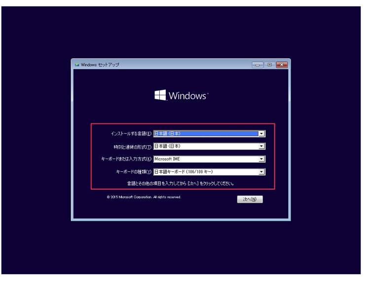 Windows セットアップです。「次へ」をクリックします。