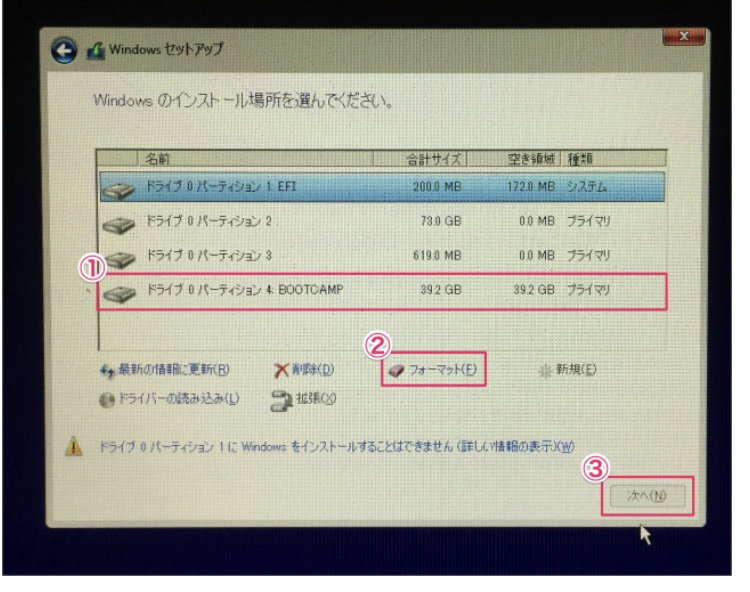 1.BOOTCAMPのパーティションを選択