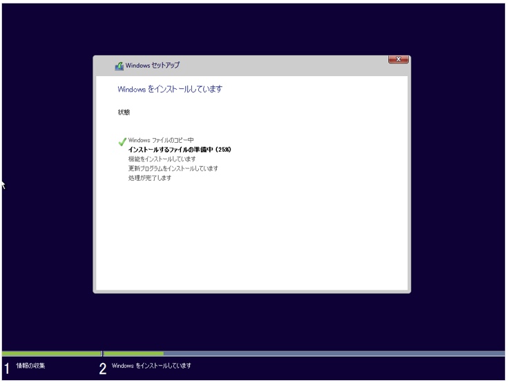 次に ISOイメージファイルから Windows ファイルのコピーが始まります。