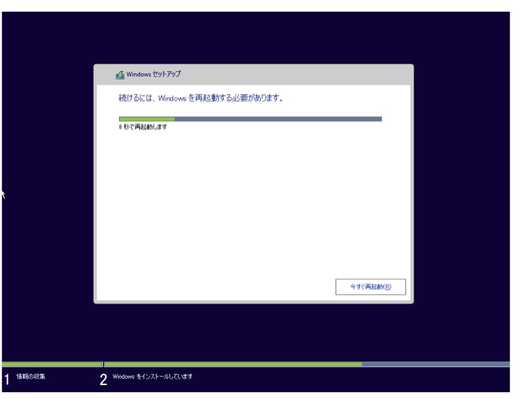 しばらくすると Windows が再起動されます。
