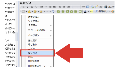 SIRIUSで挿入したい場所でクリックを押すとメニューが出てくるので「貼り付け」をクリックします。