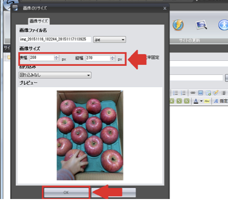 下記のような画面になるのでサイズの変更があれば変更し、「OK」をクリックします。