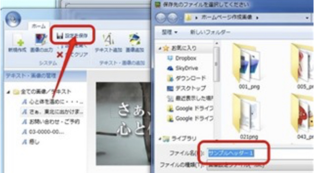 ヘッダー画像が作成出来たら「設定を保存」をクリック。(必ずしておきましょう!!)