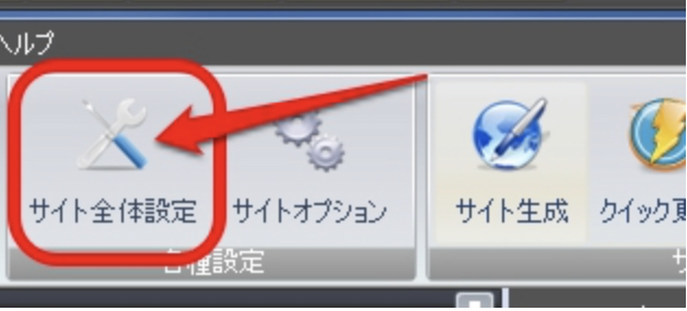 SIRIUSの「サイト全体設定」をクリック。